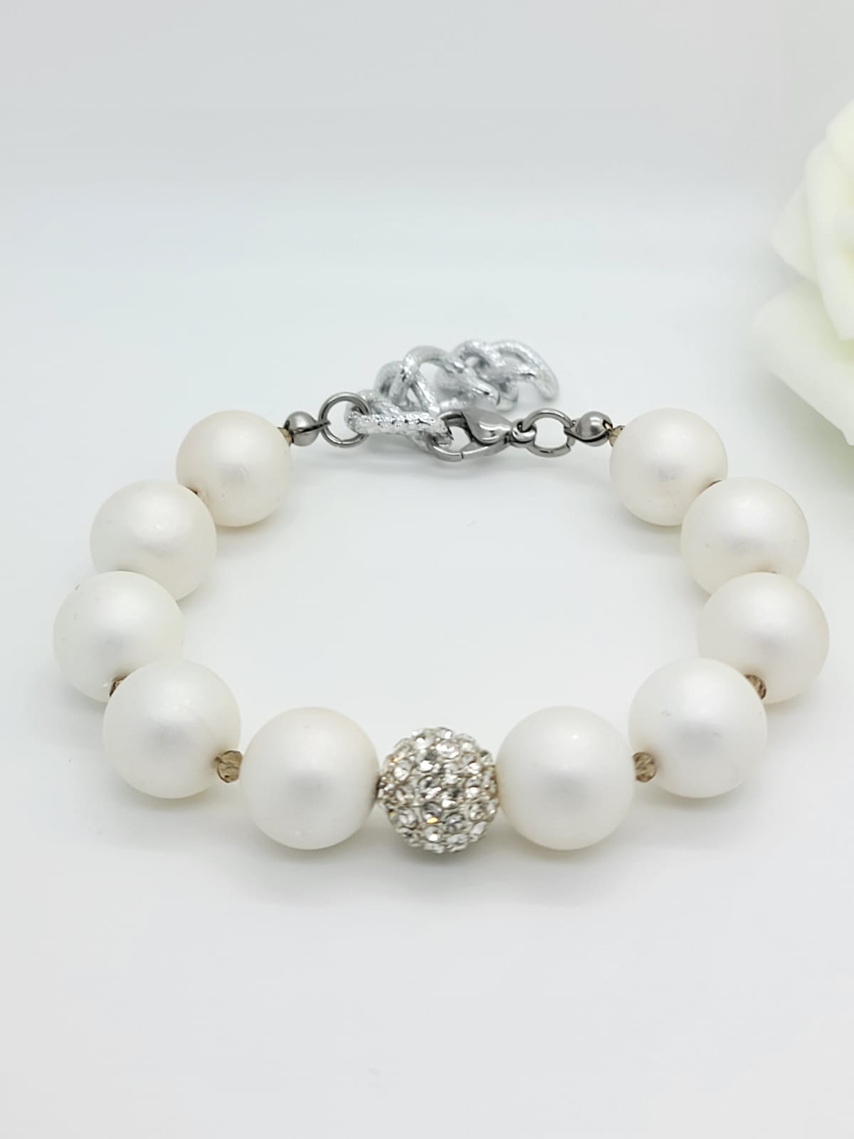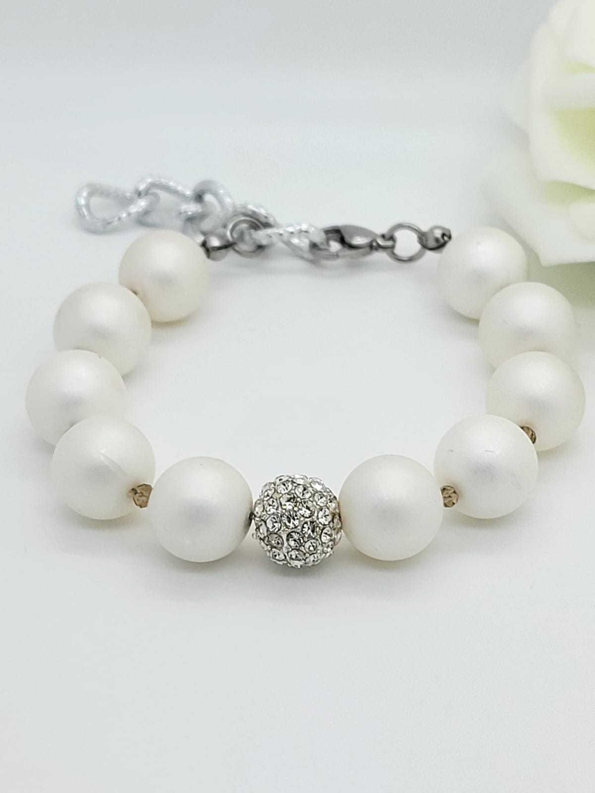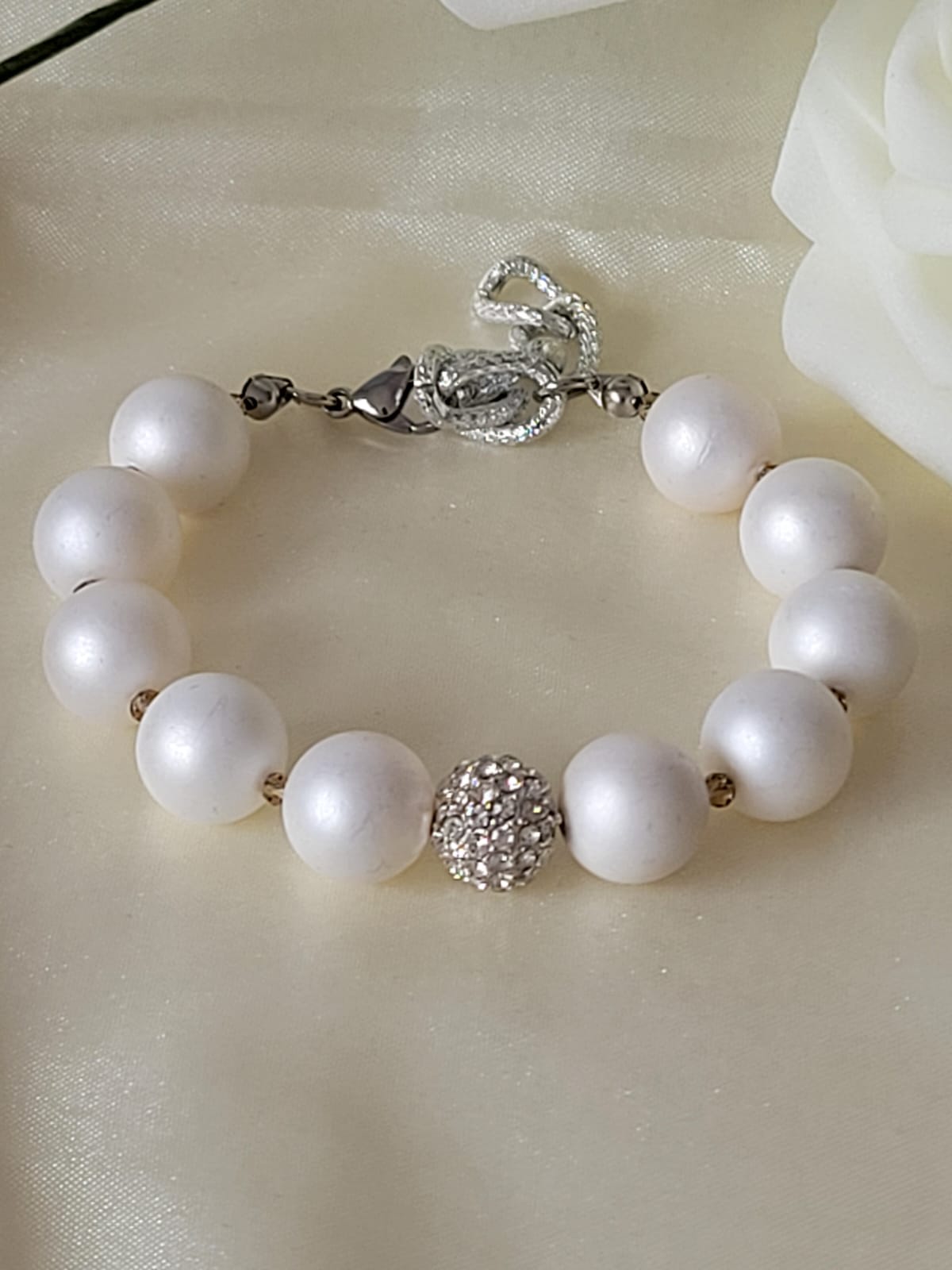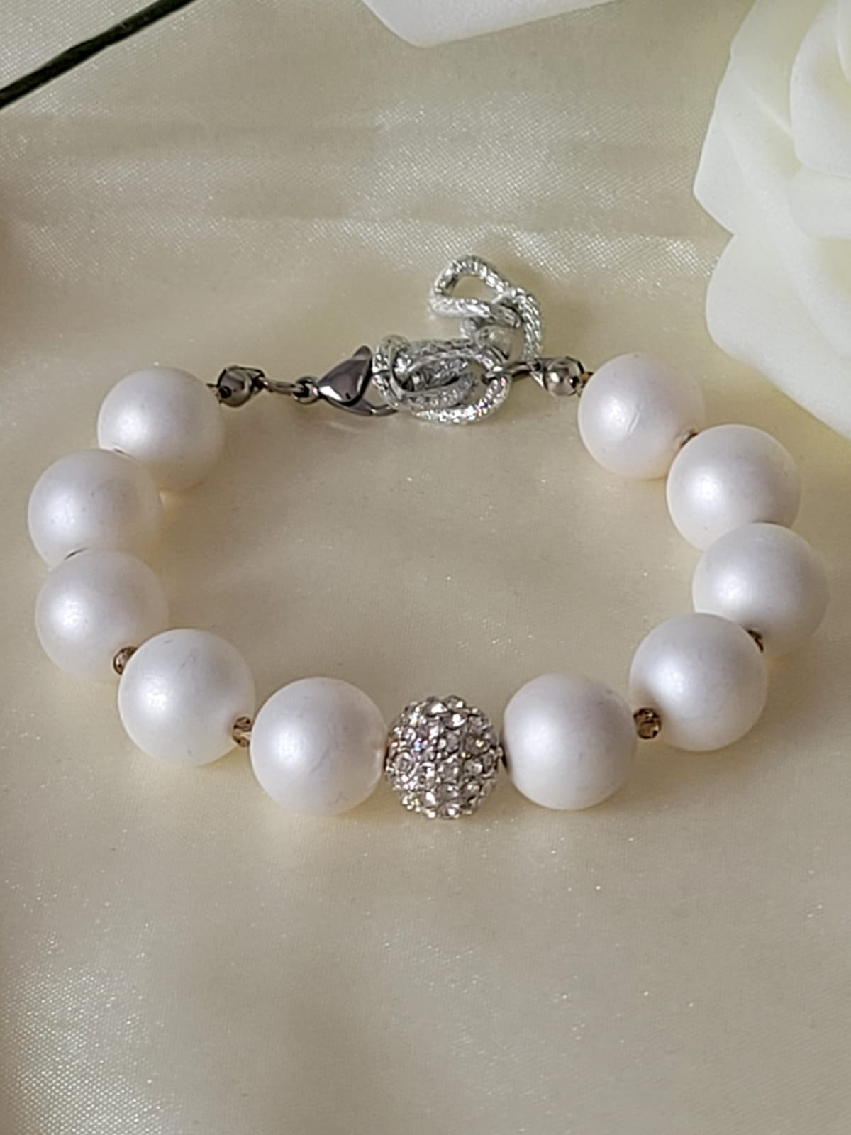 Soyez le premier à laisser votre avis sur “Bracelet de mariée avec zircone – Bijoux de mariage élégants en argent et blanc crème”