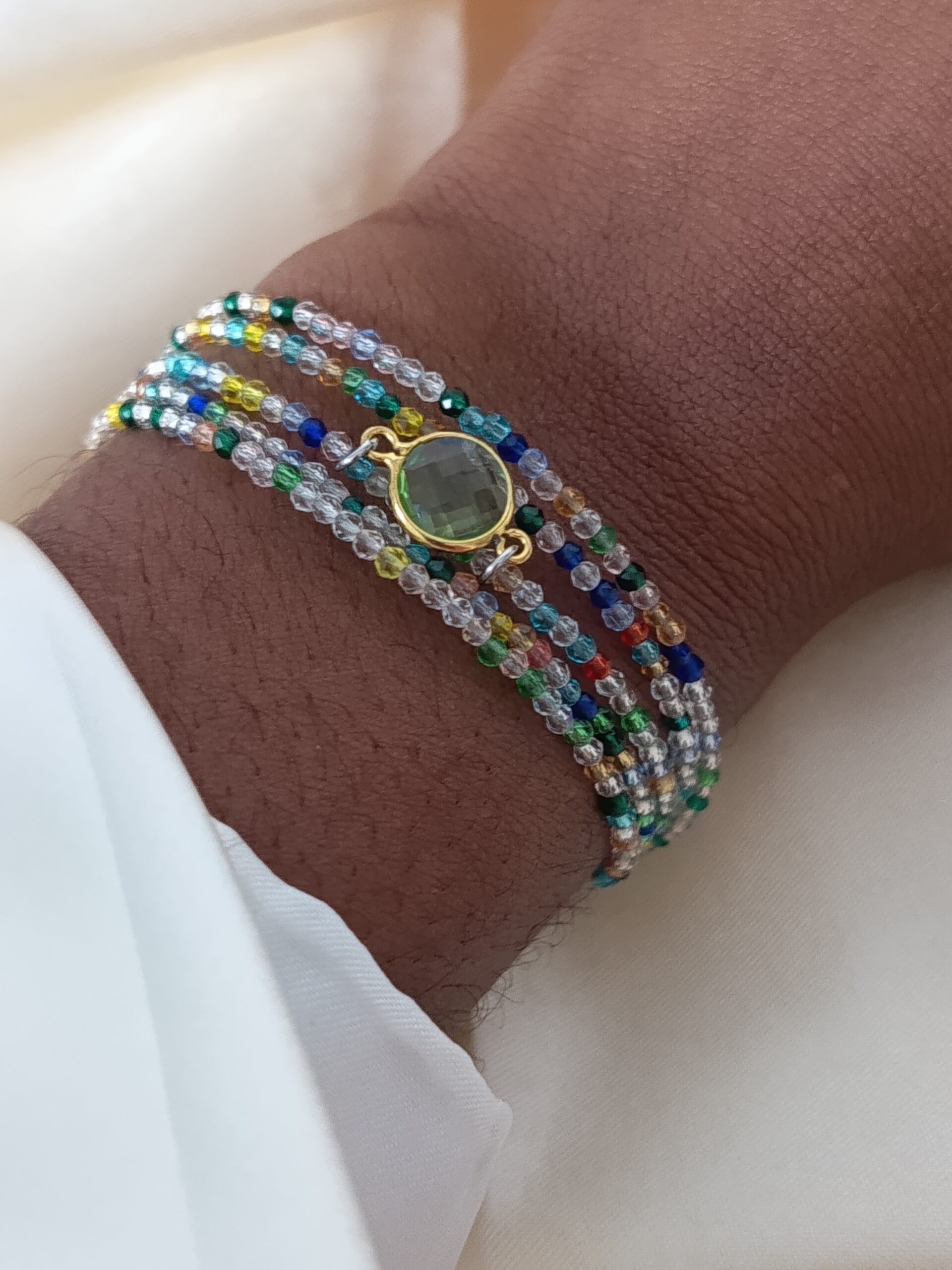 Soyez le premier à laisser votre avis sur “Bracelet wrap 5 tours en vert & or | Bijou en perles de verre fait main”
