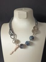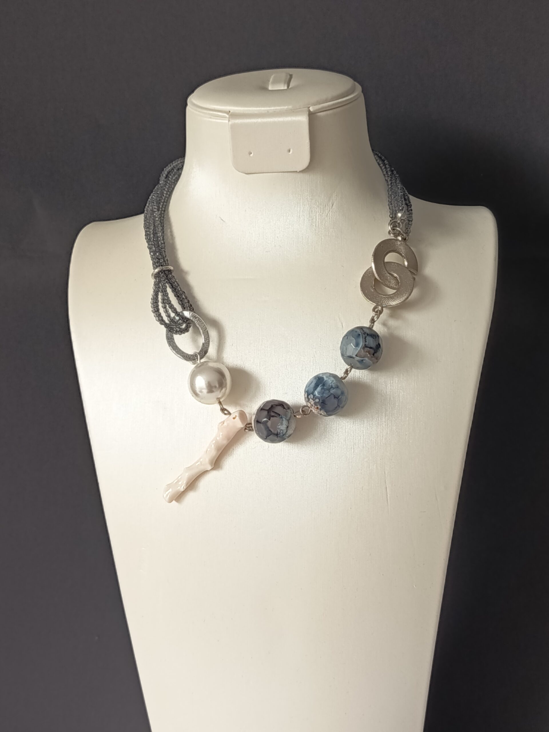 Les perles de verre facettées (2–2,5 mm), dans un délicat dégradé de gris, apportent un éclat subtil et mettent en valeur les pierres naturelles avec beaucoup de style.