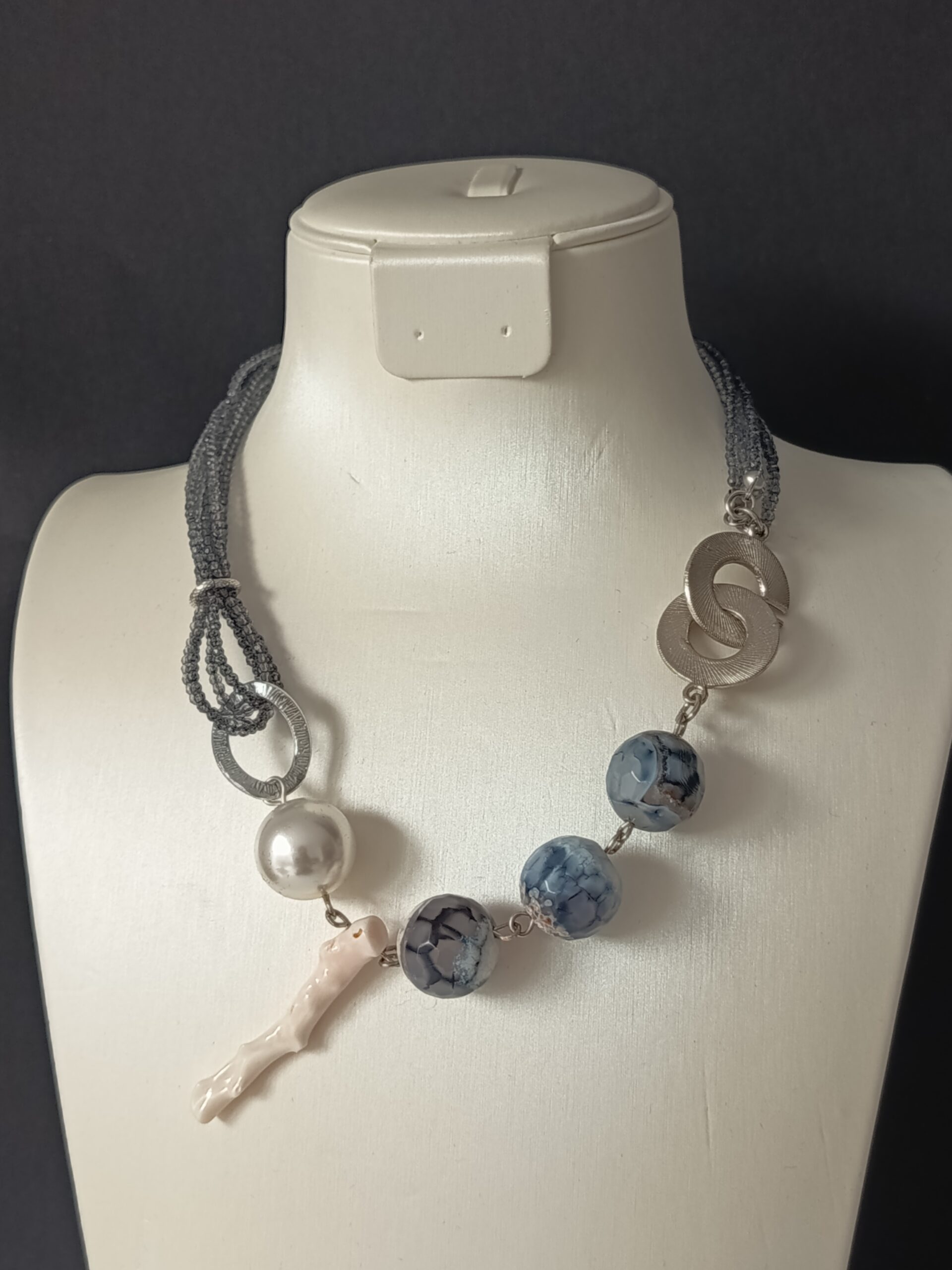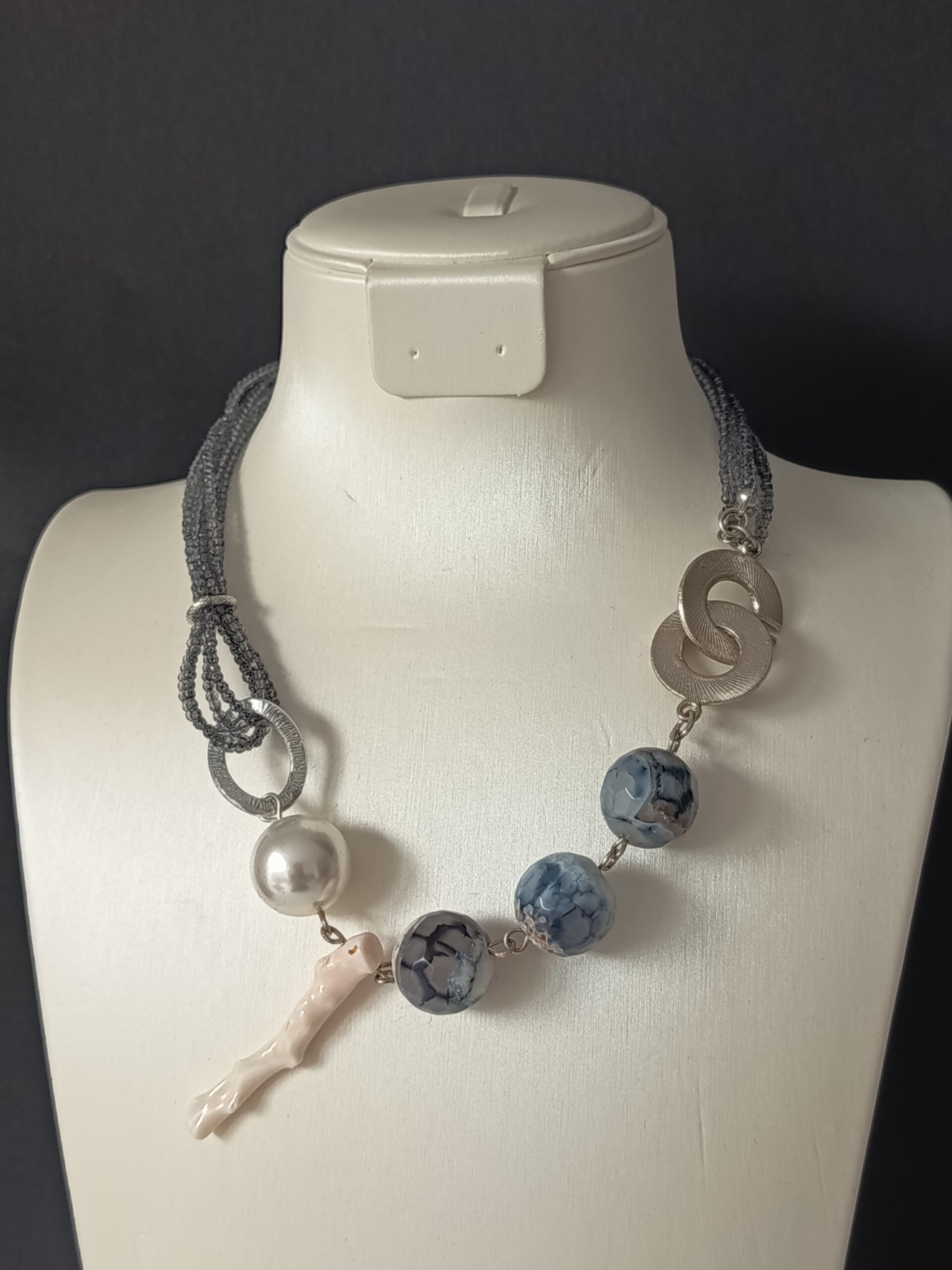 Collier avec agate, perle de coquillage & bâtonnet de corail – ✨ Collier statement élégant, fait main & unique ✨