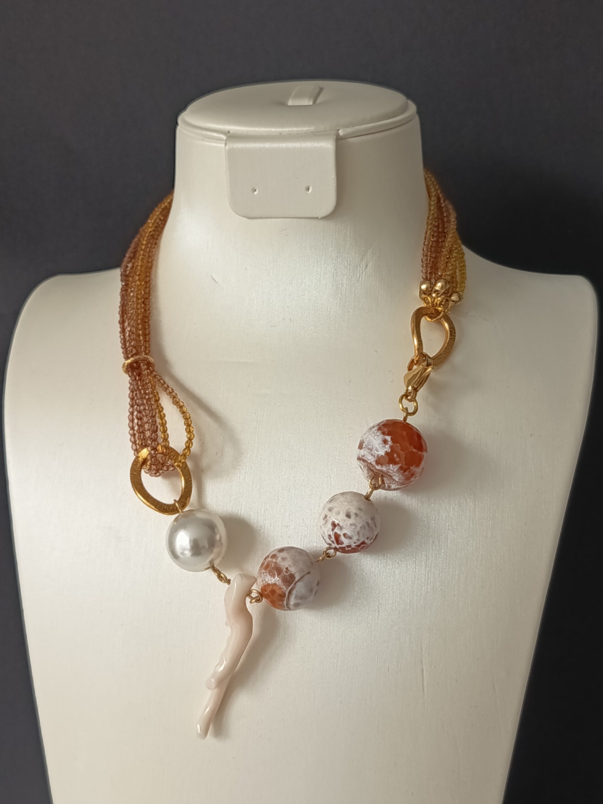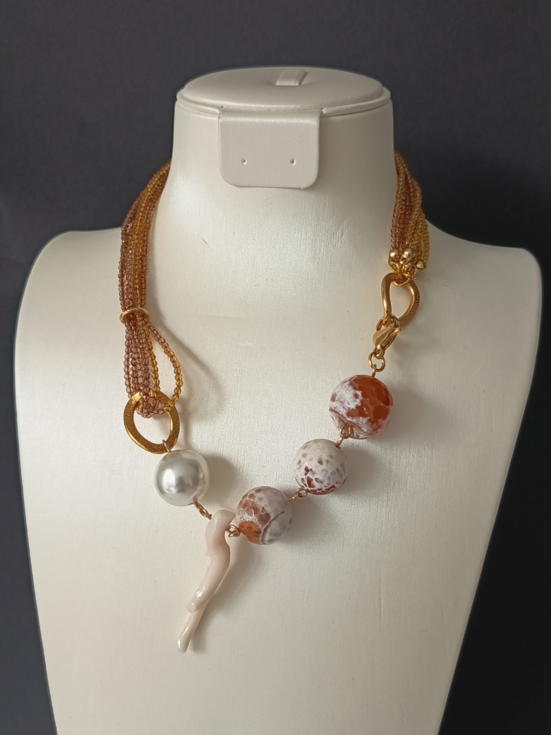Venice Collier – Perle de coquillage – Agate de feu jaune