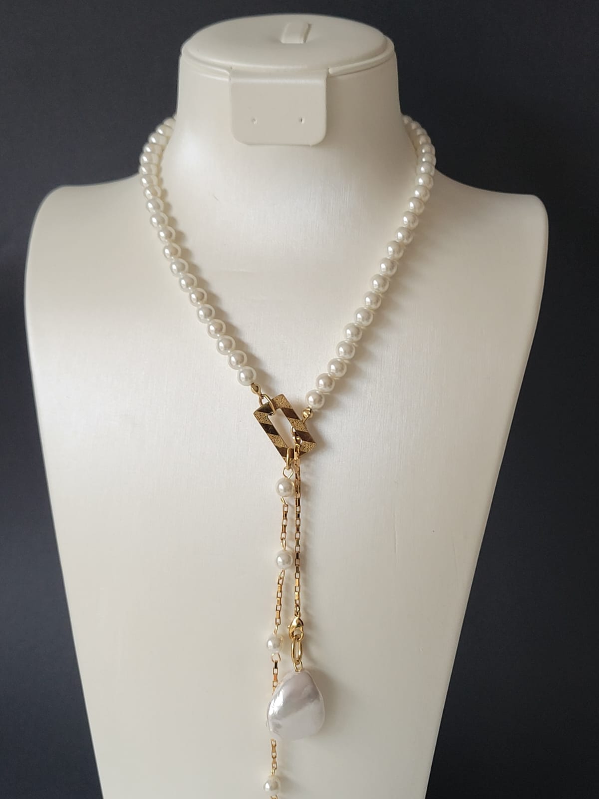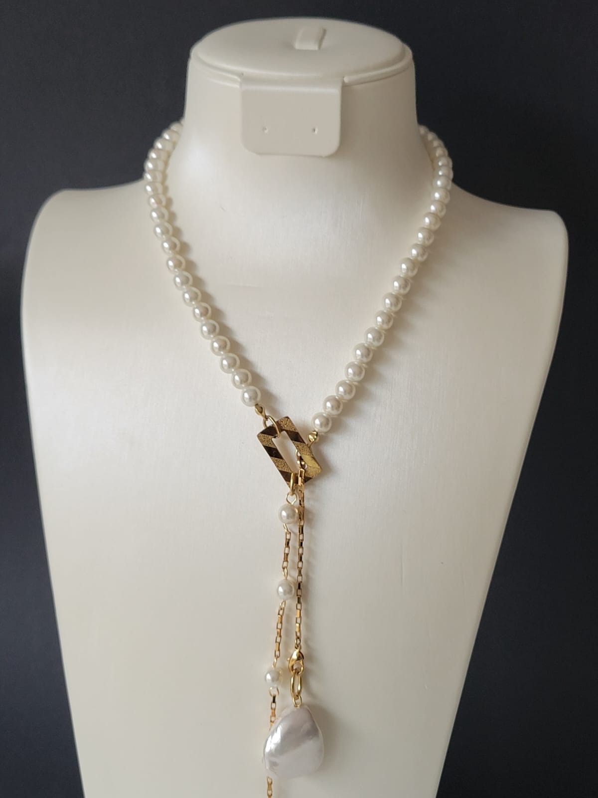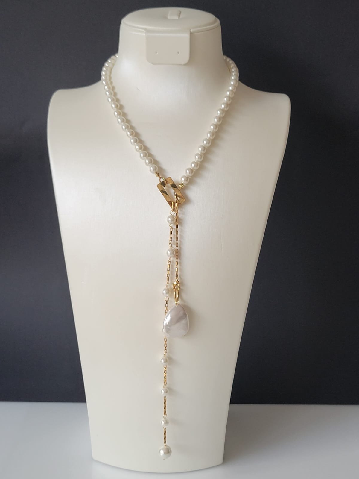 Cet élégant collier lariat est l’accessoire parfait pour la mariée et les demoiselles d’honneur. Il combine la beauté naturelle des perles de coquillage avec un placage à l’or de haute qualité et un design unique. Un bijou idéal pour les mariages et les occasions festives.