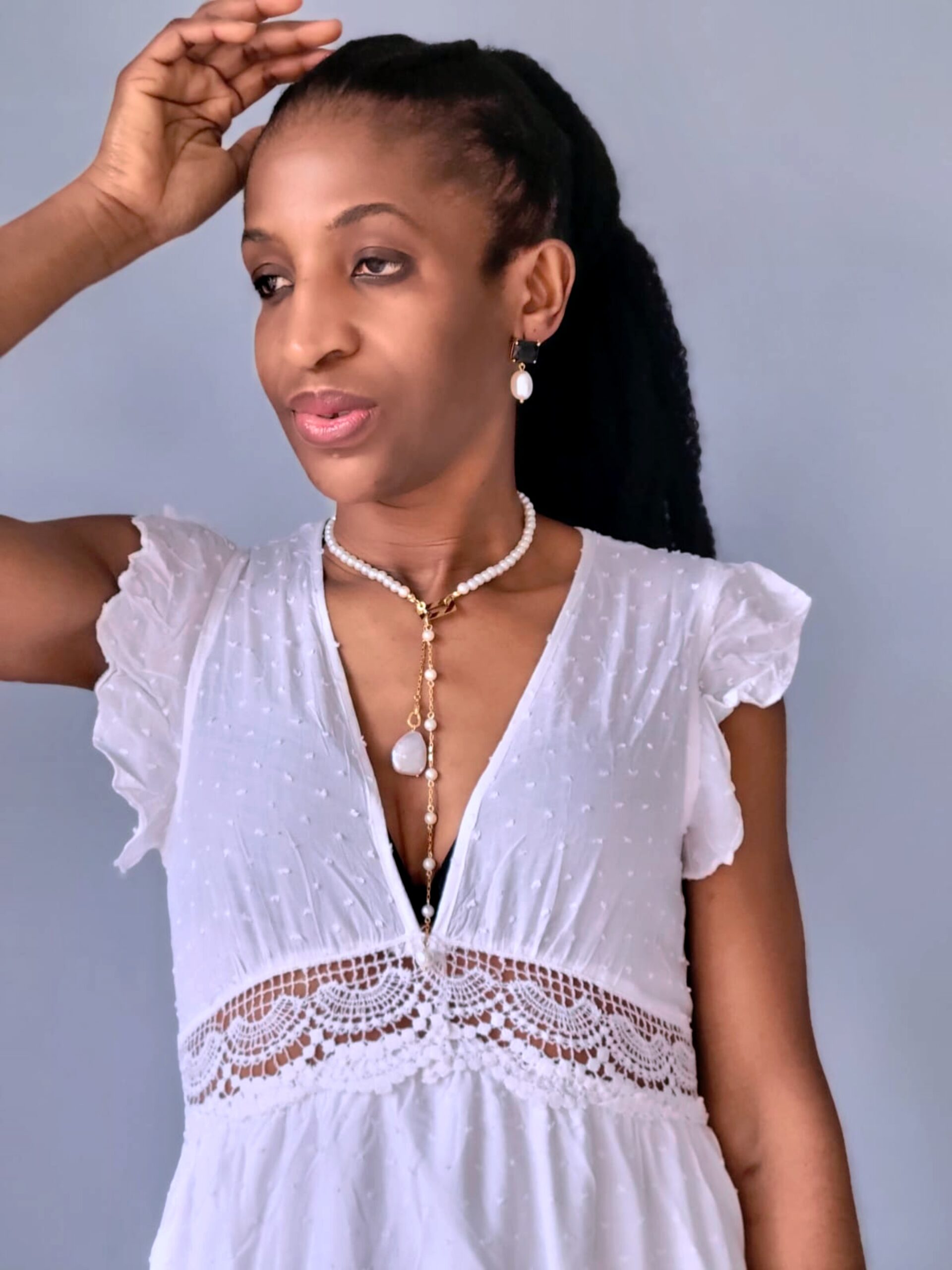 Catégorie : Colliers Étiquettes : #bijoux, #bijoux femmes, #cadeaux, #choker, #colliers, Bijoux de mariage, cadeau de demoiselle d'honneur, Cadeau de mariée, Collier de mariage, collier de perles blanches, collier lariat, collier mariée