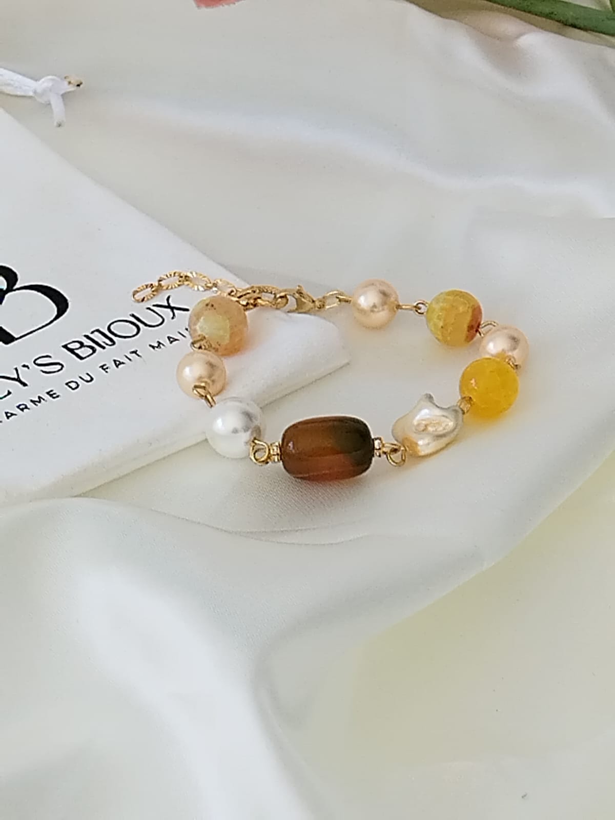 Venice Bracelet – Perle de nacre – Agate de feu jaune
