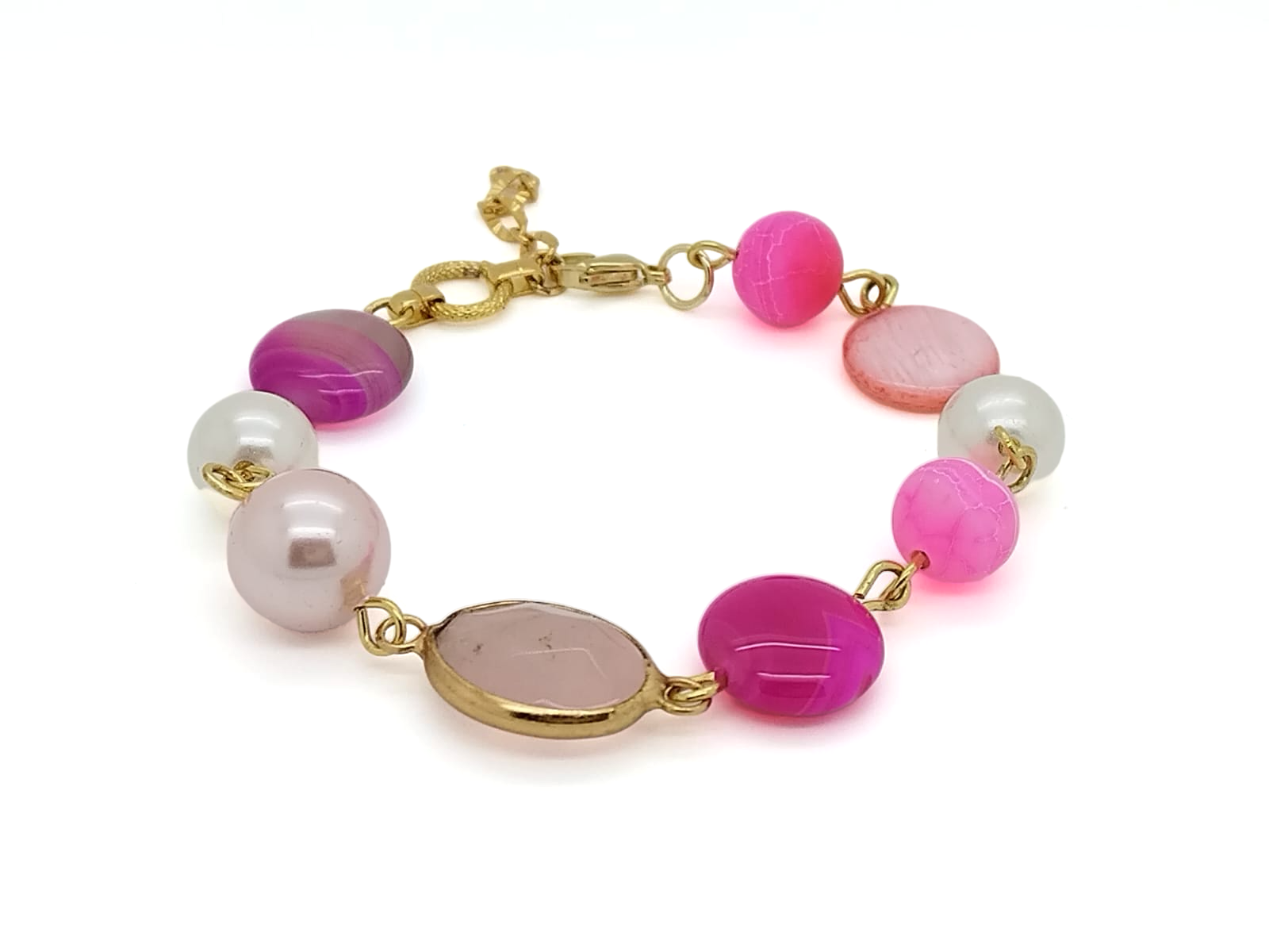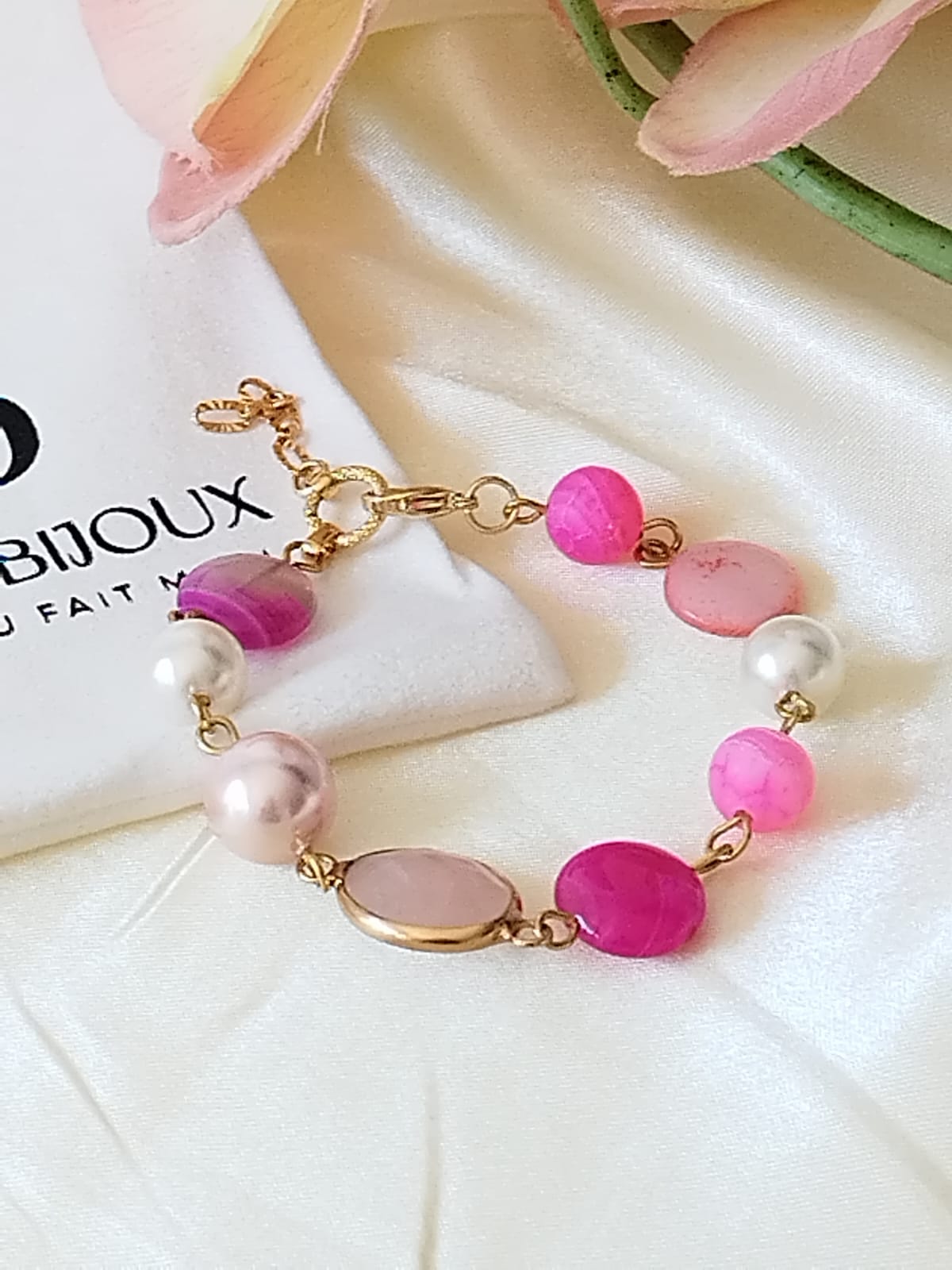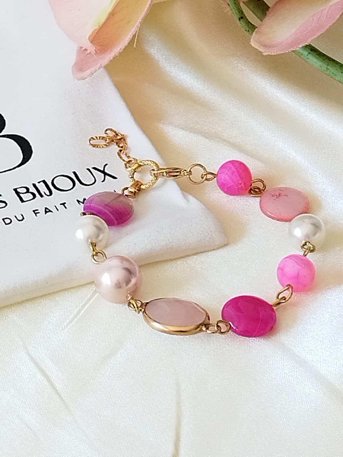 Venice Bracelet – Perle de nacre – Agate de feu Magenta