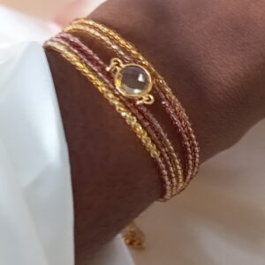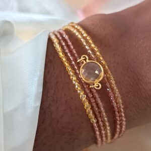 Bracelet wrap 5 tours en perles de verre avec fermoir doré & connecteur en verre doré