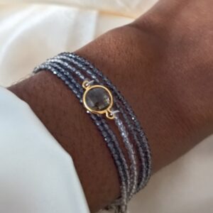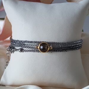 Bracelet wrap 5 tours en noir & or | Bijou en perles de verre fait main